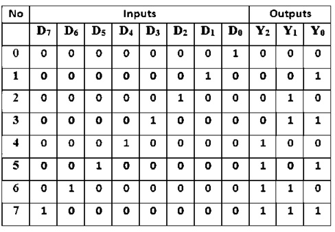Binary to Octal and Octal to Binary Conversion with Example A numerical system gives the mathematical notation for representing the numbers using digits, symbols, etc…Hindu-Arabic Numerical System is widely accepted today all over the world for representing numbers. This system was developed in India. Making this numerical system as basic many positional numbering systems such as Binary Number System, Octal Number System, Hexadecimal Number System, etc.. are invented. Al these numbering systems have there own advantages and applications. The binary number system is widely used in digital electronics. The working of the electrical circuits can be explained using binary numbers. It is useful to know the relationship between all these positional systems. In this article Binary To Octal conversions are explained. What is a Binary Numbering System? The binary number system is also known as the base-2 number system. It uses two symbols to represent the numbers. They are 0 and 1. It was developed from the Hindu-Arabic numerals. It is a positional numbering system. Each digit in binary representation is known as a bit. A combination of four bits is called a Nibble. Eight bits form a Byte. Uses of Binary Number System Binary Numbers system is very useful in digital computers. It helps in the easy implementation of electronic circuits using logic gates. As computers can only understand o’s and 1’s, this number system is used to implement electronic circuits using ON and OFF logic. Computer programmers and developers use binary numbering for programming. In modern computers, all the data is stored in the form of binary representation. For digital communication, data is transmitted in the form of binary bits. Digital electronics, CDs, Displays, etc.. uses data in the form of binary bits. What is an Octal Numbering System? Emanuel Swedenborg discovered octal Numbering in 1716. The term octal was coined by James Anderson, in 1801. It is also known as the base-8 numbering system. It uses 8 symbols to represent numbers. They are 0, 1, 2, 3, 4, 5, 6, 7 . Three binary bits form an octal digit. Uses of Octal Numbering System The octal number system was derived from the binary number system. It showed an easy way of representing larger binary numbers. In early computer systems such as IBM Microframes, UNIVAC 1050, etc.. used octal numbering system for computing as they employed 6-bit, 12-bit, and 16-bit words. This numbering system proved to be very useful for display consoles. For displaying these numbers, low-cost displays such as nixie tubes, seven-segment displays can be used as consoles. Whereas binary displays are complex, decimal displays require extra hardware and hexadecimal displays require extra numerical. In modern computing, the octal number system is preferred as it uses less number of digits and easy to display on digital screens. This type of representation is also used for floating points. In Aviation, to distinguish different aircraft on the radar screen, the transponders present on aircraft transmit code in the form of octal digits. Binary to Octal Conversion Method Both binary numbers and octal numbers are positional number systems. Each digit of a binary number is known as a bit. Octal digit is formed by grouping 3 binary bits. Each of the octal digits is represented using 3 bits. For conversion of Binary number into Octal, the given bitstream should be divided into groups with 3-its in each. After this, the Octal number equivalent to the binary bits is taken from the conversion table. There are many other methods for conversion of Binary number into Octal, but this is the easiest method used. Binary to Octal Conversion With Example To understand this conversion, let us look at an example. Let us convert the binary number ‘01010001110’ into an Octal number. Step1: Starting from the right-side, group the binary bits with 3-bits in each group. If there are leftover bits at the end, add zeroes. 001 |010 |001 |110 Here, after grouping the bits from the right-side, ’01’ is remained. To make it octal an extra zero is added at the end. Step2: Refer to the conversion table and note down the octal equivalent of the binary bits. From the table, the octal equivalents for the given number are- 110 = 6 001 = 1 010 = 2 001 = 1 Thus, the Binary To Octal conversion of the given number is = (1216)8. Octal numbers are represented with a base-8. Octal to Binary Conversion Method For interpretation of the data and storing it in memory, the computer systems convert them into binary format. So, it is important to understand the conversion. For octal to binary conversion, it is important to know the conversion table. Every octal digit can be represented in a binary format using a 3-bit combination. Octal to Binary Conversion With Example Let us convert an octal number (563)8 into binary format. The step in conversion is to write down the 3-bit binary equivalent of each octal digit from the conversion table. 563 = 101 | 110 | 011 Thus, the binary conversion of the given number is ‘101110011’ Encoder for Code-Conversion Encoders are the combinational circuits used for the conversion of one form of data into another. Encoders are usually used as code- converters. There are encoders available for the conversion of decimal numbers to binary, Hexadecimal numbers to binary, etc… For programming, the computer programmer writes the code using the octal numbering format. But computers can only interpret instructions in the form of binary format. So, for the proper functioning of electronic systems, encoders are required. There are many online converters available that are used for easy conversions. Octal To Binary Encoders are used as code converters. This Encoder consists of 8 input lines and three output lines. Here, when an octal number is given as input, it gives a 3-bit binary converted number as output. At a time only one input is high for this encoder. The truth Table of the Encoder is given 