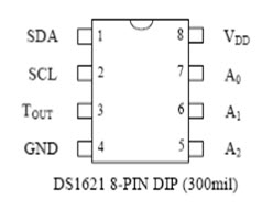 Digital Temperature Controller Circuit A Digital temperature controller circuit is a precise temperature controller in medical, industrial and home applications. This system is better than analogue/thermostat system, which has poor accuracy. For example, it can use for temperature control of an incubator where maintaining a precise temperature is very important. Digital Temperature Control System Digital Temperature Controller Block Diagram Description This proposed Digital temperature controller system provides the temperature information on a display and, when the temperature exceeds the set point, then the load (i.e. Heater) switches OFF. In this project, a lamp is provided as a load for demonstration purpose. The Block Diagram of Digital Temperature Control System is given below. Block Diagram of Digital Temperature Controller The proposed Digital temperature controller system uses a Microcontroller of 8051 family, which is the heart of the application. The display unit consists of four- seven segment display, Temperature sensor and are interfaced to the Microcontroller. The digital temperature sensor interfaced to the Microcontroller for sensing the temperature conditions. This system also provides four push button switches for adjusting the temperature settings. Then the Microcontroller continuously polls the temperature information through a digital temperature sensor and displays over the 7 segment display unit and automatically switches OFF the lamp, when the corresponding temperature exceeds the set point. Hardware Requirements Transformer (230 – 12 v ac) Voltage regulator (LM 7805) Rectifier Filter Microcontroller (at89s52/at89c51) DS1621 Temperature sensor Push buttons 7 segment display BC547 Resistors Capacitors 1N4007 Relay Microcontroller (AT89S52) The Atmel AT89S52 is an 8051 based powerful Microcontroller which provides a highly-flexible and cost-effective solution to many embedded control applications. The AT89S52 provides the following standard features: 8K bytes of Flash 256 bytes of RAM 32 I/O lines Watchdog timer Two data pointers Three 16-bit timer/counters A six-vector two-level interrupt architecture A full duplex serial port On-chip oscillator, and clock circuitry The pin diagram is given below. 8051 Microcontroller Temperature Sensor- DS1621 A sensor is a device which receives and responds to a signal or stimulus. A sensor can convert the received signal into electrical form only. The Temperature Sensor- DS 1621 provides the following standard features: Measurements require no external components Measures temperatures from -55°C to +125°C in 0.5°C increments (67°F to 257°F in 0.9°F increments) Temperature is read as a 9-bit value (2-byte transfer) Wide power supply range (2.7V to 5.5V) Converts temperature to digital word in less than 1 second Thermostatic settings are user definable and Nonvolatile Data is read from/written via a 2-wire serial interface (open drain I/O lines) Applications include thermostatic controls, industrial systems, consumer products, thermometers, or any thermal sensitive system It is an 8-pin DIP or SO package Pin Description DS1621 Pin Description SDA – 2-Wire Serial Data Input/ Output SCL – 2-Wire Serial Clock GND – Ground TOUT – Thermostat Output Signal A0 – Chip Address Input A1 – Chip Address Input A2 – Chip Address Input VDD – Power Supply Voltage A functional diagram of the DS1621 is shown in the below figure. DS1621 Functional Block Diagram The DS1621 provides 9-bit temperature readings, which indicate the temperature of the device. The thermostat output signal (TOUT) is active when the temperature of the device exceeds a user defined temperature (TH). The output remains active until the temperature drops below a user defined temperature TL, allowing for any hysteresis necessary. User defined temperature settings are stored in nonvolatile memory so parts may be programmed prior to insertion in a system. The temperature settings and temperature readings are all communicated to/from the DS1621 from the Microcontroller over a simple 2-wire (I2C) serial interface. Measuring Temperature The DS1621 measures the temperature using a band gap based temperature sensor. A delta-sigma analogue to digital converter (ADC) converts the measured temperature into a digital value that is calibrated in °C or °F. The temperature reading is provided in a 9-bit, two’s complement reading by issuing the READ TEMPERATURE command. The data is transmitted through the 2-wire serial interface- MSB first (I2C Serial Communication interface). Basic Seven Segment Display This version is a common anode version. That means that the positive leg of each LED is connected to a common point which is pin 3, Vcc in this case. Each Light Emitting Diode has a negative leg that is connected to one of the pins of the device. 7-Segment LED Display To make it work you need to connect pin 3 to 5 volts. Then to make each segment light up, connect the ground pin for that led to ground through a resistor. It can also be used through any Microcontroller port pin in sinking mode for ex. PORT 0 in 8051 series Microcontroller. Software We used the ‘C’ language to write the application code and compiled using KEIL micro vision (IDE) compiler. After the completion of the software writing, that code will be converted to hexadecimal code in order to drive the Microcontroller. The generated hex code is burnt into the Microcontroller using a suitable programmer. Schematic Diagram Connections Of Digital Temperature Controller The power supply of 5v is required to operate the system, connected to the 40 pin of Microcontroller & GND is connected to its 20pin. Pin 1.0 to 1.3 of port 1 is connected to the push buttons. Pins 3.5 to 3.7 of the Microcontroller are connected to 1, 2, 3 pins of temp sensor DS1621 respectively. Digital Temperature Controller Schematic Diagram Pin 0.0 to 0.6 of port 0 of Microcontroller is connected to 7 segment display. Pin 2.0 to 2