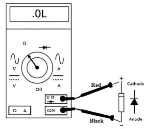 What is Diode Test : Working & Its Applications For beginners, they must have knowledge of electronic components & their working to troubleshoot any circuit or project. Similarly, having good knowledge of how to test different components is also one of the troubleshooting skills. To avoid undesired results, it is advisable for beginners to test all the basic electronic components like resistors, capacitors, diodes, and transistors before connecting to the printed circuit board. If we do not perform any tests on components before connecting them to the printed circuit board, then it is very difficult to recognize the source of the issue to check all the components. So this article discusses an overview of how to test a diode or diode test and its working. What is Diode Testing? Diode testing definition is that it is an important property of the diode which can be used to test the diode to know whether the diode is working properly or not. The diode testing can be done by using a digital multimeter to measure the resistance across the diode terminals. Diode Tester Circuit Diagram The simple diode tester circuit using IC741 is shown below. This circuit can be built with different electrical and electronic components like 741 Op-Amp IC1, R2 & R3 resistors – 1M, R1 is 6.8K, R4 is 470 Ohms, C1 capacitor – 100 uF, D2 red color LED -1, D3 green color LED, two 9V B1 & B2 batteries and 1switch. Diode Tester Circuit Diagram The main function of this diode tester circuit is to check whether the diode is working in good condition or not & also it decides its polarity. So this can be possible by using a 741 op-amp as an oscillator. Here in the circuit, the oscillator uses three resistors like R1, R2 & R3, and capacitor C1. The output of the oscillator is a square wave which makes the D2 & D3 LEDs activate and deactivate by showing the condition of the diode under test. Diode Tester Circuit Working The diode which needs to be tested in the circuit can be arranged in between two points like A & B which is shown below. This circuit can be worked through dual 9V batteries and it works in two cases which are discussed below. In the first case, the anode terminal of the diode is connected to point A, and the cathode terminal is connected to point B as shown in the above figure. Once the output of the oscillator is at a high voltage range then the diode is forward biased, so the D3 LED will be turned ON. Similarly, when the output of the oscillator is low then the diode is reverse biased as a result, no LED will be turned ON. In the second case, the cathode terminal of the diode is connected to point A & anode terminal is connected to point B. Once the output of the oscillator is high then the diode will be reverse biased, so LED will not turn ON. Similarly, if the output of the oscillator is at less voltage level then the diode will be forward biased so the D2 LED will be turned ON. If the diode test meets the above two conditions then the diode is said to be in good condition. So we can determine its polarity otherwise it is damaged. If the diode in the test is turned ON then it is shorted and if it is not turned ON then it is open. The R4 resistor in the circuit is connected in series with LEDs to restrict the current flow. How to Test a Diode? The diode is a semiconductor device including two terminals. The main function of the diode is to allow the current flow only in one direction and it is used in different applications like clippers and clampers, rectifiers, etc. The diode testing is mainly done to identify its working conditions in both biasing modes. Before diode testing, we need to identify its terminals first to know the anode and cathode. Most of the diode’s body contains the silver band or other color bands which are known as cathode & the remaining terminal is the usual anode. So, performing the basic diode testing is extremely simple and can be done in different ways by using an analog multimeter, digital multimeter, and ohmmeter. Diode Testing using Analog Multimeter The diode testing using an analog multimeter can be done like the following. In this meter, we use resistance mode to test the diode because it doesn’t include a dedicated diode test mode so it is related to the diode testing with DMM ohmmeter mode. Diode Testing using Analog Multimeter Before testing a diode, we need to keep the selector switch of the analog multimeter in the resistance mode. Analog multimeter includes two probes black and red where a black color probe is a cathode and a red color probe is an anode. After that connect the two probes of the meter to the positive & negative terminals of the diode. If the analog multimeter shows a low-resistance value, then the diode is said to be healthy. Now the selector of the meter needs to be placed in high resistance mode & reverse the diode terminals and connect them with the two probes of the multimeter in reverse bias. If the analog multimeter shows a very high resistance or OL on the display then the diode is said to be defective. So this is the procedure to test a diode using an analog multimeter. Diode Testing using Digital Multimeter The testing of a diode with a DMM or Digital Multimeter can be done by using two methods like diode mode and ohmmeter mode or resistance mode. Diode Mode Testing This type of testing is the best way to check a diode because it depends on the diode’s characteristics. In this testing, the diode is connected in forward biased to measure the voltage drop across the diode with a digital multimeter. Diode Testing using Diode Mode First, the center knob of the digital multimeter is set to diode checking mode by turning to that position where the symbol of the diode is indicated. In this diode mode, the digital multimeter supplies 2mA of current in between the two leads. Connect the multimeter’s red color probe to the anode terminal of the diode and the black color probe is connected to the cathode terminal of the diode. So the diode