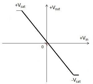 What is an Inverting Op Amp : Working & Its Applications The configuration of an op-amp or operational amplifier can be done in two ways like inverting op-amp and non-inverting op-amp. In either of these configurations, the output is given back to its input which is called feedback. This feedback is used in different functional circuits like oscillators, filters, amplifiers, different types of voltage regulators, rectifiers, etc. We know that operational amplifiers include two input terminals like positive & negative but the connection of feedback can be either to the positive or negative terminal. Once the output is connected to the positive terminal of the operational amplifier, then the feedback is called positive. Similarly, if it is connected to a negative terminal then it is called a negative. The connection of output to the input can be done through an external resistor or feedback resistor. So feedback connection is used to control the gain accurately based on the application. What is an Inverting Op-Amp? The inverting op-amp or operational amplifier is an essential op-amp circuit configuration that uses a negative feedback connection. As the name suggests, the amplifier inverts the input signal and changes it. An inverting op-amp is a type of operational amplifier circuit used to generate an output that is out of phase as compared to its input through 180 degrees which means, if the input signal is positive (+), then the output signal will be opposite. The inverting op-amp is designed through an op-amp with two resistors. Inverting Operational Amplifier Configuration The circuit diagram of an inverting op-amp is shown below. In this circuit, the negative terminal is connected through feedback to create a closed-loop operation. While working with op-amps, we need to remember two essential rules like there is no flow of current in the input terminal & the other one is V1 is always equal to V2. Inverting Op Amp Circuit This is because the positive input terminal is at OV as it is Grounded. In the above configuration, the op-amp is connected by using feedback to create a closed-loop operation. When dealing with operational amplifiers there are two very important rules to remember about inverting amplifiers, these are: “No current flows into the input terminal” and that “V1 always equals V2”. However, in practical op-amp circuits, the above-mentioned two rules are broken to some extent because the input junction and feedback signal ‘X’ are at equal potential. When the positive input is at zero volts, then the junction is called a “Virtual Earth”. So due to this virtual earth, the op amp’s input resistance is equivalent to the input resistor value (Rin). Here, the inverting op amp’s closed-loop gain can be fixed through the ratio of the two exterior resistors. Once we apply the input signal through the ‘Ri’ resistor to the inverting terminal of the op-amp, the non-inverting terminal is connected to the ground. Further, a feedback is provided to stabilize the circuit. Now , the output can be controlled through a feedback resistor ‘Rf’. Inverting Op-Amp Working & Operations The voltage gain provided from the above circuit is given as Av = Vo/Vi Where, Vi-V1 = IiRi V1-V0 = IfRf But, we know that a perfect operational amplifier includes unlimited input impedance because there is no flow of current into its input terminals. I1 = I2 = 0. Therefore, Ii is equivalent to If. So, Vi-V1 = IfRi V1-V0 = IfRf We already know that in a perfect operational amplifier, the voltage at two inputs in the op-amp is always equivalent. Because the non-inverting terminal is grounded, so the voltage that appeared at the noninverting terminal is V1 = V2= 0. So, the equation will be, Vi-0 = IfRi 0-Vo = IfRf From the above equations, we can get, -Vo/ Vi = IfRf/ IfRi Vo/ Vi = – (IfRf/ IfRi) Vo/ Vi = – (Rf/Ri) This equation can be changed to get Vout is Vout/ Vi = – (Rf/Ri) Vout = – (Rf/Ri) x Vin The inverting op-amp’s voltage gain is, Inverting Op Amp Gain (Av) = – (Rf/Ri) This specifies that the inverting amplifier’s voltage gain can be decided through the fraction of the ‘Rf’ to the ‘Ri’ including the negative sign that indicates the reversal phase. In addition, the inverting amplifier’s input impedance is ‘Ri’. Like DC amplifiers, these amplifiers provide outstanding linear characteristics to make them ideal. In addition, they are frequently used to change the i/p current to the o/p voltage in the Transresistance form otherwise Transimpedance Amplifiers form. The output voltage (Vout) equation shows that the op-amp circuit is linear for a fixed gain of an amplifier like Vout = Vin x Gain. So this property is very helpful in changing a small sensor signal to a better voltage. Voltage Characteristics The voltage characteristics of inverting amplifier are shown in the below graph. It can be noted that once the input signal is positive like Vin, then the output voltage like Vout is negative. In addition, the output voltage will be changed linearly once the input voltage is applied. Voltage Characteristics This characteristic will saturate otherwise the output will become constant, once the amplitude of the input signal goes ahead of both the applied power supplies to the op-amp. +VCC = + VSAT & –VCC = -VSAT Inverting Op Amp Waveforms The inverting op-amps input & output waveforms are shown below. The following waveforms can be drawn by assuming the gain of the amplifier & the sine wave is an input signal. From the following waveforms, it is very clear that the output is double in magnitude as compared to the input like Vout = Av * Vin & phase is reverse to the input. Inverting Op Amp Waveforms Inverting Op-Amp Solved Problems 1). For the following inverting amplifier circuit, calculate the input impedance and output voltage. Inverting Amplifier Example Circuit The input impedance is set through input resistance Ri which is 4kΩ. So Zin=4kΩ. Vout=Vin Av Av =