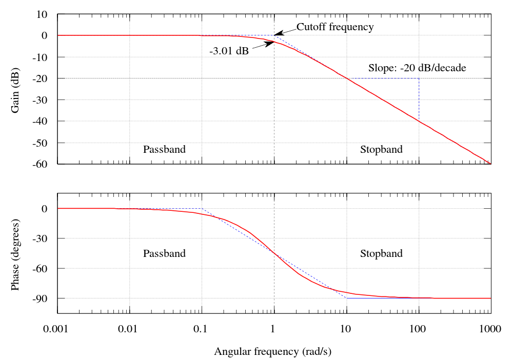 What is a High Pass Filter? Circuit Diagram, Characteristics, and Applications There was an era where while making a telephone call over distance places, one had to put his mouth very close to the transmitter, speak very slowly and very loudly so that message can be heard clearly by the person at the other end. Today, we can even make video calls over worldwide with high-quality resolutions. The secret of such a tremendous development of technology lies in Electrical filter theory and Transmission line theory. Electrical filters are circuits that pass only selected band of frequencies while attenuating other unwanted frequencies. One of such filters is High pass filter. What is a High Pass Filter? The definition of high pass filter is a filter which passes only those signals whose frequencies are higher than cutoff frequencies thereby attenuating signals of lower frequencies. The value of cutoff frequency depends on the design of the filter. High Pass Filter Circuit The basic High Pass Filter is built by a series connection of capacitor and resistor. While the input signal is applied to the capacitor, the output is drawn across the resistor. High Pass Filter Circuit In this circuit arrangement, the capacitor has high reactance at lower frequencies so it acts as an open circuit to the low-frequency input signals until cutoff frequency ‘fc’ is reached. Filter attenuates all the signals below the cutoff frequency level. At frequencies above cut off frequency level reactance of the capacitor becomes low and it acts as a short circuit to these frequencies thereby allowing them to pass directly to the output. Passive RC High Pass Filter The above shown High Pass filter is also known as Passive RC High Pass filter as the circuit is built using only passive elements. There is no need of applying external power for working of the filter. Here capacitor is the reactive element and output is drawn across the resistor. High Pass Filter Characteristics When we talk about cutoff frequency we refer to the point in the frequency response of the filter where the gain is equal to 50% the peak gain of the signal .i.e. 3dB of the peak gain. In High Pass Filter gain increases with an increase in frequencies. High Pass Filter Frequency Curve This cutoff frequency fc depends on R and C values of the circuit. Here Time constant τ = RC, the cutoff frequency is inverse proportional to the time constant. Cutoff frequency = 1/2πRC Circuit gain is given by AV = Vout/Vin .i.e. AV = (Vout)/(V in) = R/√(R2 + Xc2) = R/Z At low frequency f: Xc→∞, Vout = 0 At high-frequency f: Xc →0, Vout = Vin High Pass Filter Frequency Response or High Pass Filter Bode Plot In high pass filter, all frequencies lying below the cutoff frequency ‘fc’ are attenuated. At this cut off frequency point we get -3dB gain and at this point reactance of the capacitor and resistor values will be same .i.e. R = Xc. Gain is calculated as Gain (dB) = 20 log (Vout/Vin) The slope of high pass filter curve is +20 d B/ decade .i.e. after passing cutoff frequency level the output response of the circuit increases from 0 to Vin at a rate of +20 dB per decade which is 6 dB increase per octave. High Pass Filter Frequency Response The region from the initial point to cutoff frequency point is known as stop band as no frequencies are allowed to pass. The region from above the cutoff frequency point. i.e. -3 dB point is known as the passband. At cutoff frequency, point output voltage amplitude will be 70.7% of the input voltage. Here bandwidth of the filter denotes the value of frequency from which signals are allowed to pass. For example, if the bandwidth of the high pass filter is given as 50 kHz it means that only frequencies from 50 kHz to infinity are allowed to pass. The phase angle of the output signal is +450 at the cut off frequency. The formula to calculate the phase shift of high pass filter is ∅=arctan (1/2πfRC) Phase Shift Curve In practical application, the output response of filter does not extend to infinity. The electrical characteristic of the filter elements applies the limitation to the filter response. By proper selection of filter components, we can adjust the range of frequencies to be attenuated, the range to be passed etc… High Pass Filter using Op-Amp In this high pass filter along with passive filter elements, we add Op-amp to the circuit. Instead of getting an infinite output response, here the output response is limited by open loop characteristics of the Op-amp. Hence this filter acts as a band-pass filter with a cut off frequency which is defined by the bandwidth and gain characteristics of Op-amp. High Pass Filter using Op-Amp The open loop voltage gain of Op-amp acts as a limitation to the bandwidth of the amplifier. The gain of the amplifier reduces to 0 dB with the increase in input frequency. The response of the circuit is similar to passive high pass filter but here gain of the Op-amp amplifies the amplitude of the output signal. The gain of the filter using non inverting Op-amp is given by: AV = Vout/Vin = (Af (f/fc))/√(1+ (f/fc)^2 ) where Af is passband gain of the filter = 1+( R2)/R1 f is the frequency of the input signal in Hz fc is the cut off frequency When low tolerance resistors and capacitors are used these High Pass Active filters provide good accuracy and performance. Active High Pass Filter High Pass Filter using Op-amp is also known as an active high pass filter because along with passive elements capacitor and resistor an active element Op-amp is used in the circuit. Using this active element we can control the cutoff frequency and output response range of the filter. Second Order High Pass Filter The filter circuits we saw till now are all considered as first order high pass filters. In second order high pass filter, an additional block of an RC network is added to the first order high pass filter at the input path. Second Order High Pass Filter The frequency response of second order hig