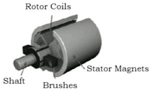 What is a Permanent Magnet Synchronous Motor & Its Working In an electrical system, synchronous motors are the most widely used steady-state 3-phase AC motors, which convert electrical energy into mechanical energy. This type of motor operates at synchronous speed, which is constant and it is synchronous with the supply frequency and the period of rotation is equal to the integral no. of AC cycles. That means the speed of the motor is equal to the rotating magnetic field. This type of motor mainly used in power systems to improve the power factor. There are non-excited and DC excited synchronous motors, which operate according to the magnetic power of the motor. Reluctance motors, hysteresis motors, and permanent magnet motors are the non-excited synchronous motors. This article is all about the working of a permanent magnet synchronous motor. What is a Permanent Magnet Synchronous Motor? The permanent magnet synchronous motors are one of the types of AC synchronous motors, where the field is excited by permanent magnets that generate sinusoidal back EMF. It contains a rotor and stator same as that of an induction motor, but a permanent magnet is used as a rotor to create a magnetic field. Hence there is no need to wound field winding on the rotor. It is also known as a 3-phase brushless permanent sine wave motor. The permanent magnet synchronous motor diagram is shown below. Permanent Magnet Synchronous Motor Permanent Magnet Synchronous Motor Theory The permanent magnet synchronous motors are very efficient, brushless, very fast, safe, and give high dynamic performance when compared to the conventional motors. It produces smooth torque, low noise and mainly used for high-speed applications like robotics. It is a 3-phase AC synchronous motor that runs at synchronous speed with the applied AC source. Instead of using winding for the rotor, permanent magnets are mounted to create a rotating magnetic field. As there is no supply of DC source, these types of motors are very simple and less cost. It contains a stator with 3 windings installed on it and a rotor with a permanent magnet mounted to create field poles. The 3-phase input ac supply is given to the stator to start working. Working Principle The permanent magnet synchronous motor working principle is similar to the synchronous motor. It depends on the rotating magnetic field that generates electromotive force at synchronous speed. When the stator winding is energized by giving the 3-phase supply, a rotating magnetic field is created in between the air gaps. This produces the torque when the rotor field poles hold the rotating magnetic field at synchronous speed and the rotor rotates continuously. As these motors are not self-starting motors, it is necessary to provide a variable frequency power supply. EMF and Torque Equation In a synchronous machine, the average EMF induced per phase is called dynamic induces EMF in a synchronous motor, the flux cut by each conductor per revolution is Pϕ Weber Then the time taken to complete one revolution is 60/N sec The average EMF induced per conductor can be calculated by using ( PϕN / 60 ) x Zph = ( PϕN / 60 ) x 2Tph Where Tph = Zph / 2 Therefore, the average EMF per phase is, = 4 x ϕ x Tph x PN/120 = 4ϕfTph Where Tph = no. Of turns connected in series per phase ϕ = flux/pole in weber P= no. Of poles F= frequency in Hz Zph= no. Of conductors connected in series per phase. = Zph/3 The EMF equation depends on the coils and the conductors on the stator. For this motor, distribution factor Kd and pitch factor Kp is also considered. Hence, E = 4 x ϕ x f x Tph xKd x Kp The torque equation of a permanent magnet synchronous motor is given as, T = (3 x Eph x Iph x sinβ) / ωm Direct Torque Control of Permanent Magnet Synchronous Motor To control the permanent magnet synchronous motor, we use different types of control systems. Depending on the task, the necessary controlling technique is used. The different controlling methods of permanent magnet synchronous motor are, Sinusoidal Category Scalar Vector: Field oriented control (FOC) (with and without position sensor) Direct torque control Trapezoidal Category Open-loop Closed-loop (with and without position sensor) Direct torque control technology of this motor is a very simple control circuit with effective dynamic performance and good control range. It doesn’t require any position sensor for the rotor. The main disadvantage of using this control method is, it produces high torque and a current ripple. Construction The permanent magnet synchronous motor construction is similar to the basic synchronous motor, but the only difference is with the rotor. The rotor doesn’t have any field winding, but the permanent magnets are used to create field poles. The permanent magnets used in the PMSM are made up of samarium-cobalt and medium, iron, and boron because of their higher permeability. The most widely used permanent magnet is neodymium-boron-iron because of its effective cost and ease of availability. In this type, the permanent magnets are mounted on the rotor. Based on the mounting of the permanent magnet on the rotor, the construction of a permanent magnet synchronous motor is divided into two types. They are, Surface-mounted PMSM In this construction, the magnet is mounted on the surface of the rotor. It is suited for high-speed applications, as it is not robust. It provides a uniform air gap because the permeability of the permanent magnet and the air gap is the same. No reluctance torque, high dynamic performance, and suitable for high-speed devices like robotics and tool drives. Surface Mounted Buried PMSM or Interior PMSM In this type of construction, the permanent magnet is embedded into the rotor as shown in the figure below. It is suitable for high-speed applications and gets robustness. Reluctance torque is due to the saliency of the motor. Buried PMSM Working of Permanent Magnet Synchronous Motor The working of the permanent magnet 